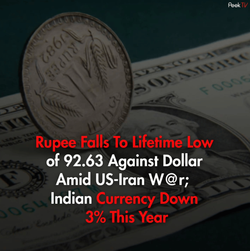 The Fact: The Indian rupee has now fallen to a record low of ₹92.6 per US dollar. This drop is due to the surge in global crude oil prices and significant foreign investor outflows from Indian markets as the US-Iran conflict raises tension in West Asia.