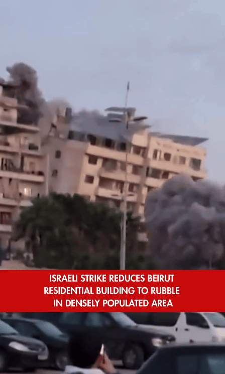 The Fact: Escalating its offence on Iran and its allies, Israel struck residential buildings in a densely populated area of central Beirut, killing at least 12 people. Videos showed the buildings collapsing like a pack of cards within seconds.